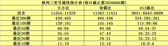 上期回来:陈列三第2026086期奖号为334,奖号012路比为2:1:0,奇偶比为2:1,大小比为0:3,和值为10,跨度为1。