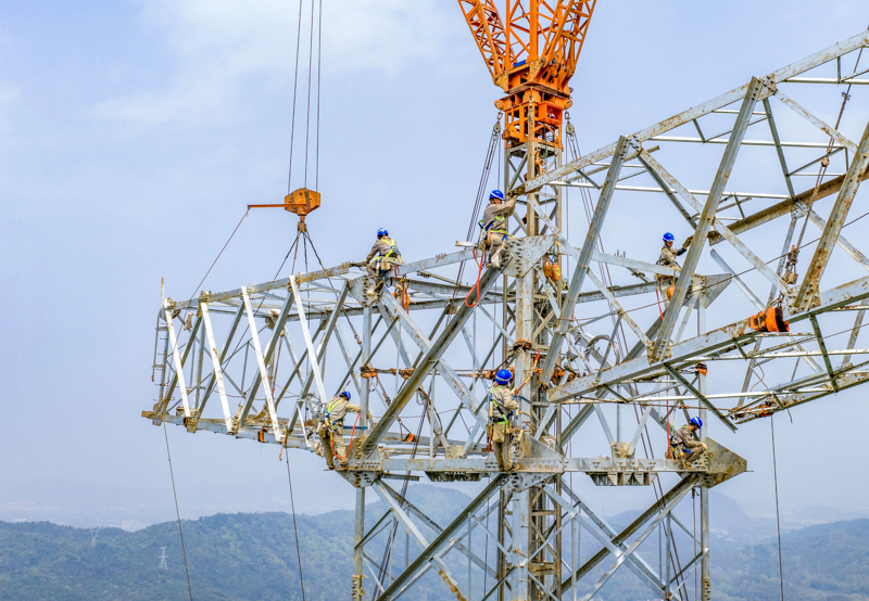 4月1日,在安徽省芜湖市繁昌区境内,安徽送变电工程有限公司施工东说念主员在甘肃—浙江±800千伏特高压直流输电工程施工现场功课(无东说念主机相片)。\n 新华社发(郑贤列摄)
