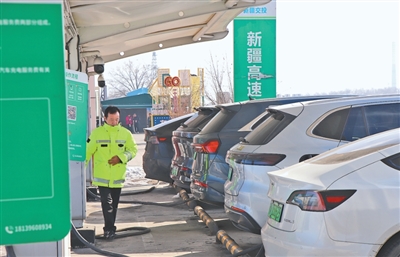 位于昌吉回族自治州的连霍高速五工台劳动区,司机王可可开着新动力汽车驶进充电站,使用600千瓦的超等快充,不到10分钟便充满了电。“喝杯咖啡的时间就能满电动身,相等方便。”王可可说。