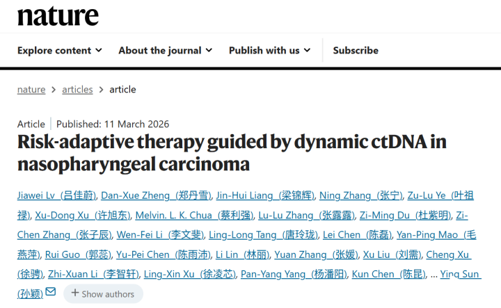 3月12日,中山大学肿瘤防治中心孙颖、吕佳蔚团队在国外顶级期刊《当然》(Nature)发表重磅推敲遵循。该责任以鼻咽癌行为疾病模子,初次残暴并考证了基于动态液体活检的“风险适宜性治愈”新政策——在治愈流程中通过液体活检动态、无创地监测患者轮回肿瘤DNA,及时更新患者的预后风险;同期团结患者肿瘤微环境的重塑特征“澜倒波随”地调整后续治愈有打算,最终使患者得到信得过的个体化精确治愈,从而蔓延糊口时辰。推敲将鼻咽癌的治愈由曩昔“一成不变”的静态政策退换为“澜倒波随”的动态、个体化治愈决策。