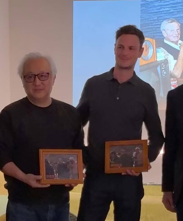 昨晚,电影《菜肉馄饨》制片东说念顾主晓东出当今活动的坐席里,给休斯特家属带来了两张剧照手脚礼物。在这部电影中,“休斯特”出当今东说念主民公园的相亲角,拿着他的相机,记载着上海的相亲群像。电影情节中,保安叫这位老外“不许拍,不许拍”,“休斯特”则回复说念,“听不懂,听不懂!”他持续拿着相机咔咔记载……