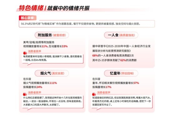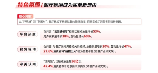 讲演中对于餐饮的拆解露馅,特质氛围、特质心情和特质口味正在形成协力。一方面,“氛围感餐厅”“漂亮饭”等内容在平台上的热度不息攀升;另一方面,一东谈主食、烟火气、怀旧风仪等看似漫步的偏好,其实齐指向灭亡个底层需求:在吃饭这件高频往常中,从头找到心情的落点。