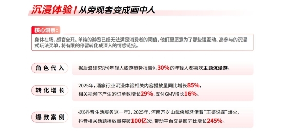 酒旅行业的变化更为直不雅。措施化行程与传统住宿时势,正在让位于参与型体验。销耗者不再得志于措施化的行程与住宿,而是但愿通过参与、互动和千里浸,信得过进入一段体验之中。千里浸式上演、在地文化、习惯行为与体育赛事,正在成为拉动出行决议的伏击身分。