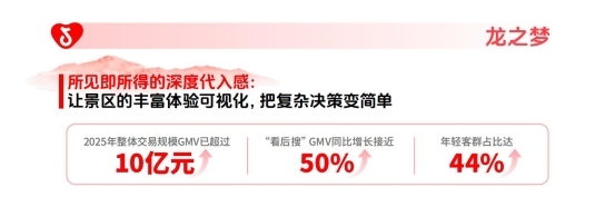 其破局旅途,是用内容裁汰通晓门槛,用直播裁汰决议资本。通过“饲养员给大象洗澡”“带薪撸虎”等高反差内容制造传播爆点,叠加节点策划,半个月实现GMV约5000万。2025年举座走动范畴防止10亿元,“看后搜”GMV同比增长近50%。同期,直播间被打造为“在线导游”,高频教育票种与组合逻辑,搞定用户“怎么买最合算”的具体问题。线上数据再反哺居品升级,打造演艺城板块,年青客群占比耕种至44%。