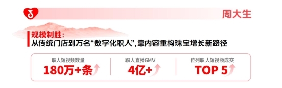 而客单价较高的周大生,把导购变成“数字化职东谈主”,用180万条短视频不息种草,在高客单决议链路中反复成立信任,再用门店收罗贯串滚动,让珠宝从低频刚需转向可不息的内容驱动增长。
