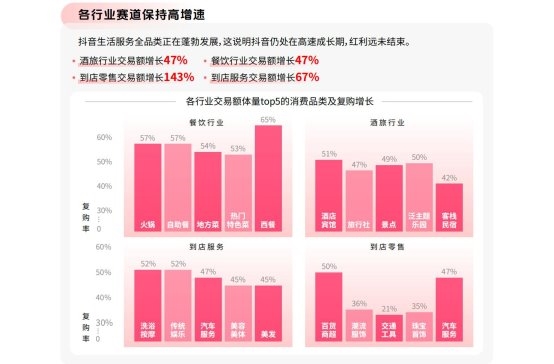 而细分到具体赛谈,也纷纷呈现出高速增长态势。2025年抖音生计处事酒旅走动额增长47%,餐饮增长47%,到店零卖增长143%,到店处事增长67%。